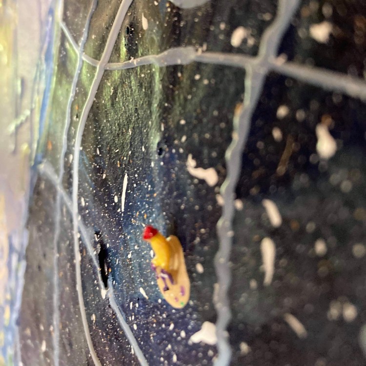 B612. Publié parHugo-Diogon MAXENCE20212022Publié dans2021, Filisme, Peintures Filisme 100x120cm Détail d’un des astéroïdes avec figurine. Détail d’un volcan, fumée en coton. Similaire