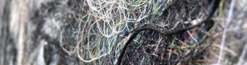 Des mètres de fils de couture tissent le portrait du grand couturier Karl LARGERFELD.