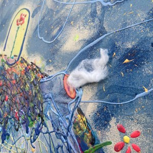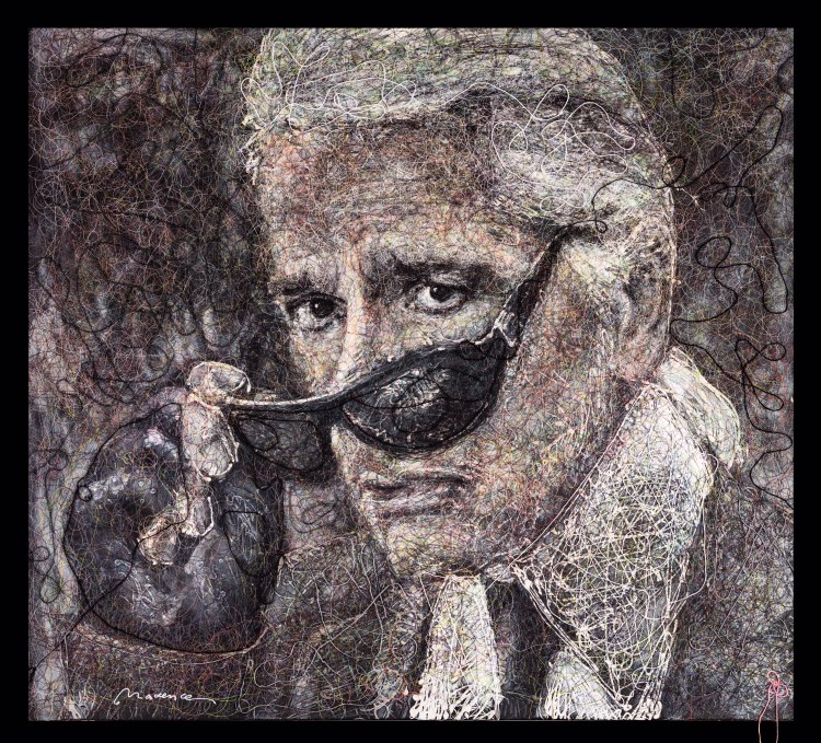 Des mètres de fils de couture tissent le portrait du Grand couturier Karl LARGERFELD.