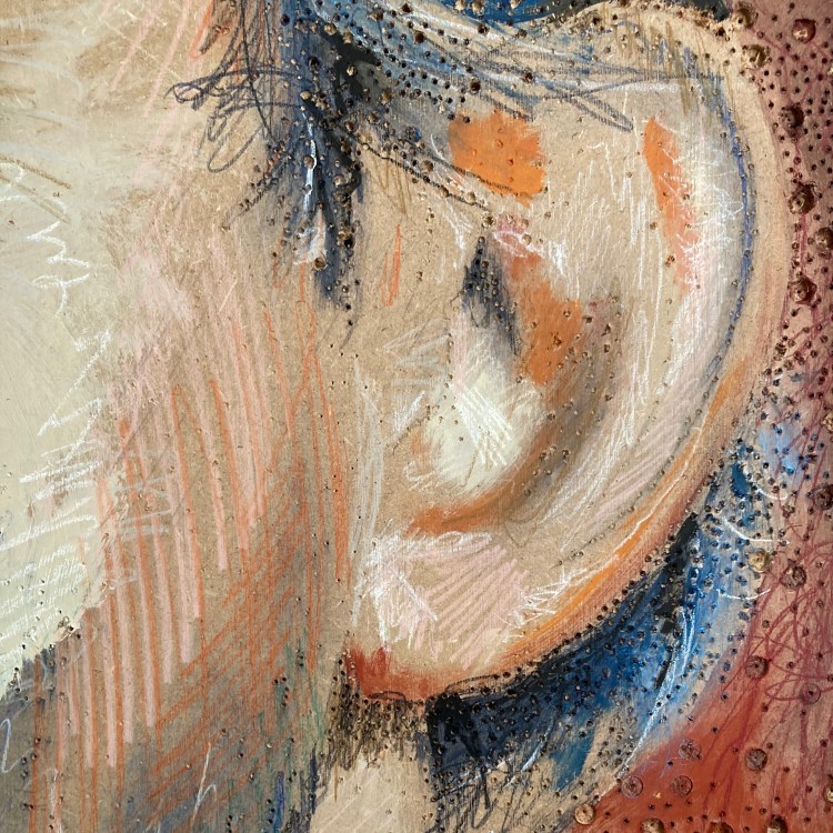 Peint tout en noir, ce portrait d‘Arthur RIMBAUD apparaît et disparait selon la lumière.